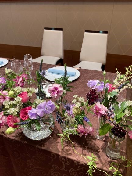 花を扱う仕事をしていると、ついつい装花やブーケに目が行ってしまします。どれも新郎新婦の個性が垣間見えて素敵でした♡♡遠方の式だとなかなかお花を持って帰るのは難しいですが、最後にゲストに配ってくれる装花はありがたく頂いて家でも楽しんでいます。