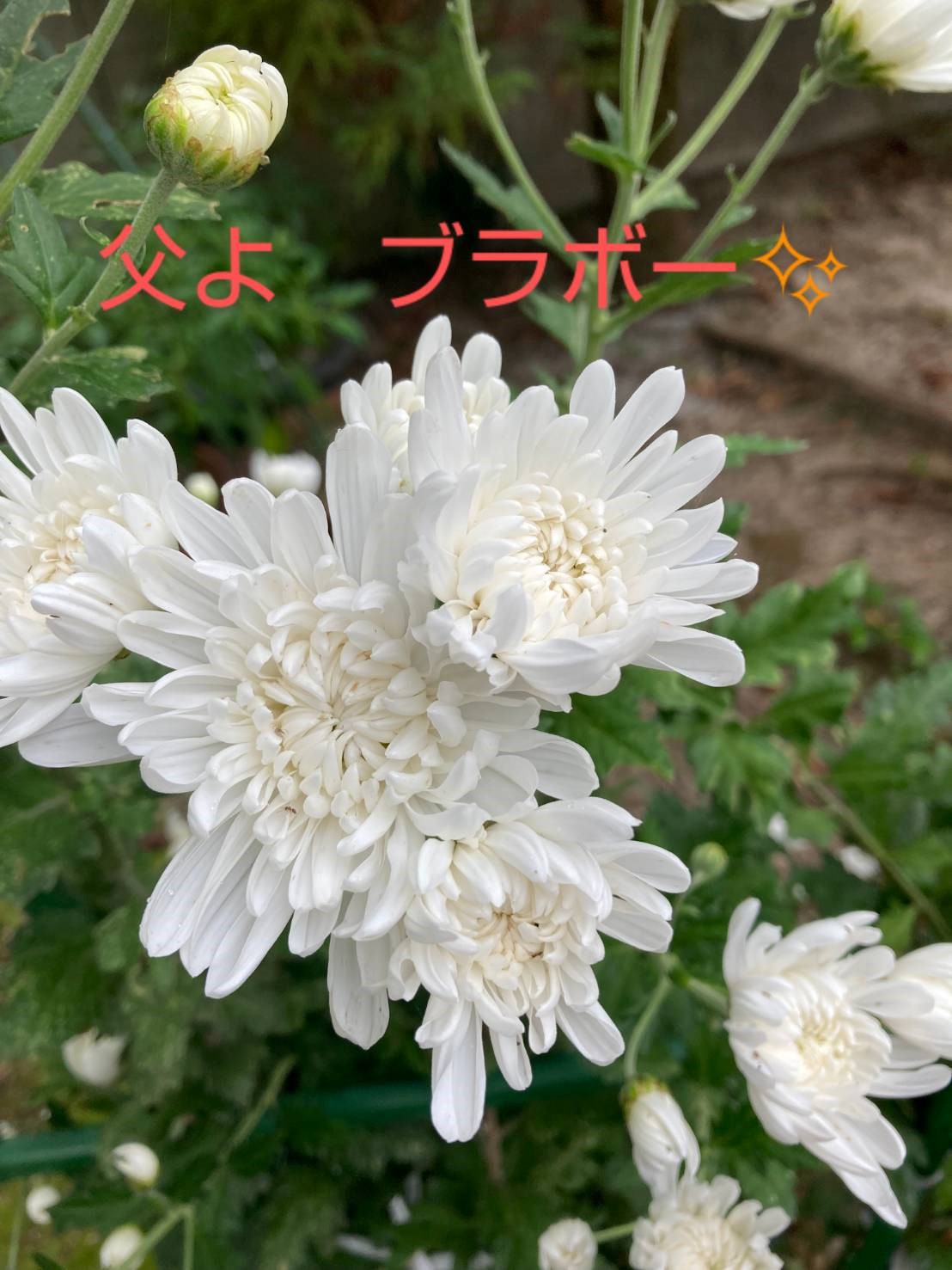 父の凄技!極め付けはクラシックのスプレー菊をプランターに挿し木し、花を咲かせます。