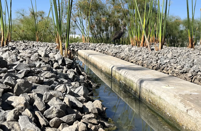 砂利水路を巡ったあと、5つの大きな池に順次流れていきます。各池には、違った種類の植物が植えられており、それぞれの植物が特定の有害成分を吸い上げます。