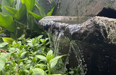 最後の池は水がきれいになっており、カエルや魚が泳いでいます。