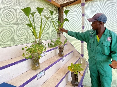 まずは何段階かに分かれた貯水タンクの中で固形物と水を分離し、分離後の水にはバクテリアが加えられ、汚染物質を分解し植物に吸収されやすいようにします。
