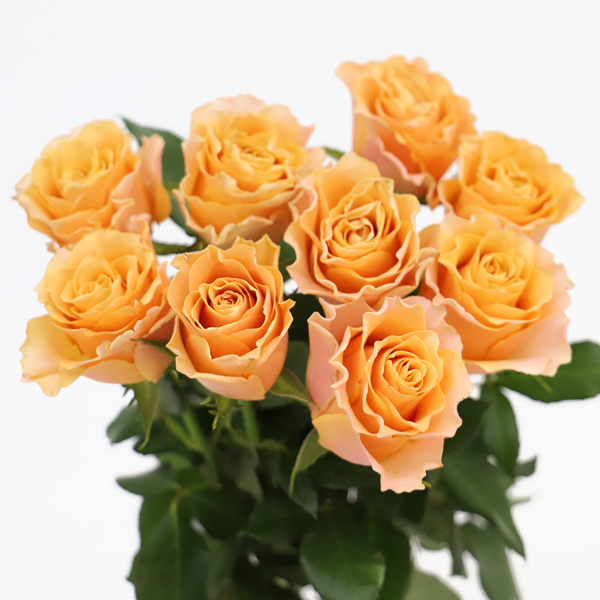 フリル状の花弁が目を引きます。ピーチカラーみのある唯一無二のオレンジバラ。
